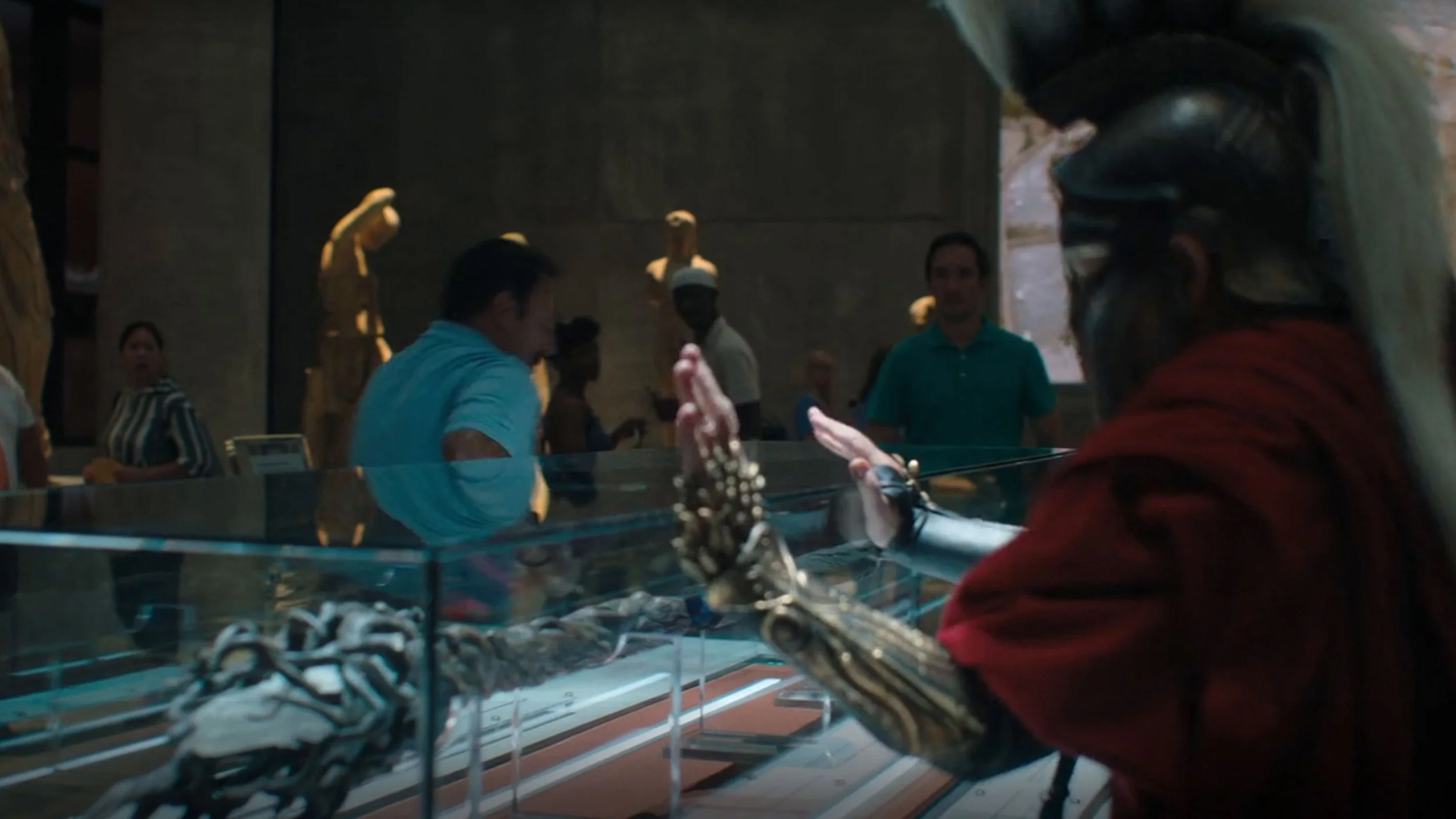 The set design involved glass-encased artifacts, marble flooring, armor, etc. all of which pick up reflections, which would have been complex and expensive to clean up in post-production if a green screen had been used as the background. The museum segment benefited immensely from a virtual production solution, providing creative freedom with lighting and production design.