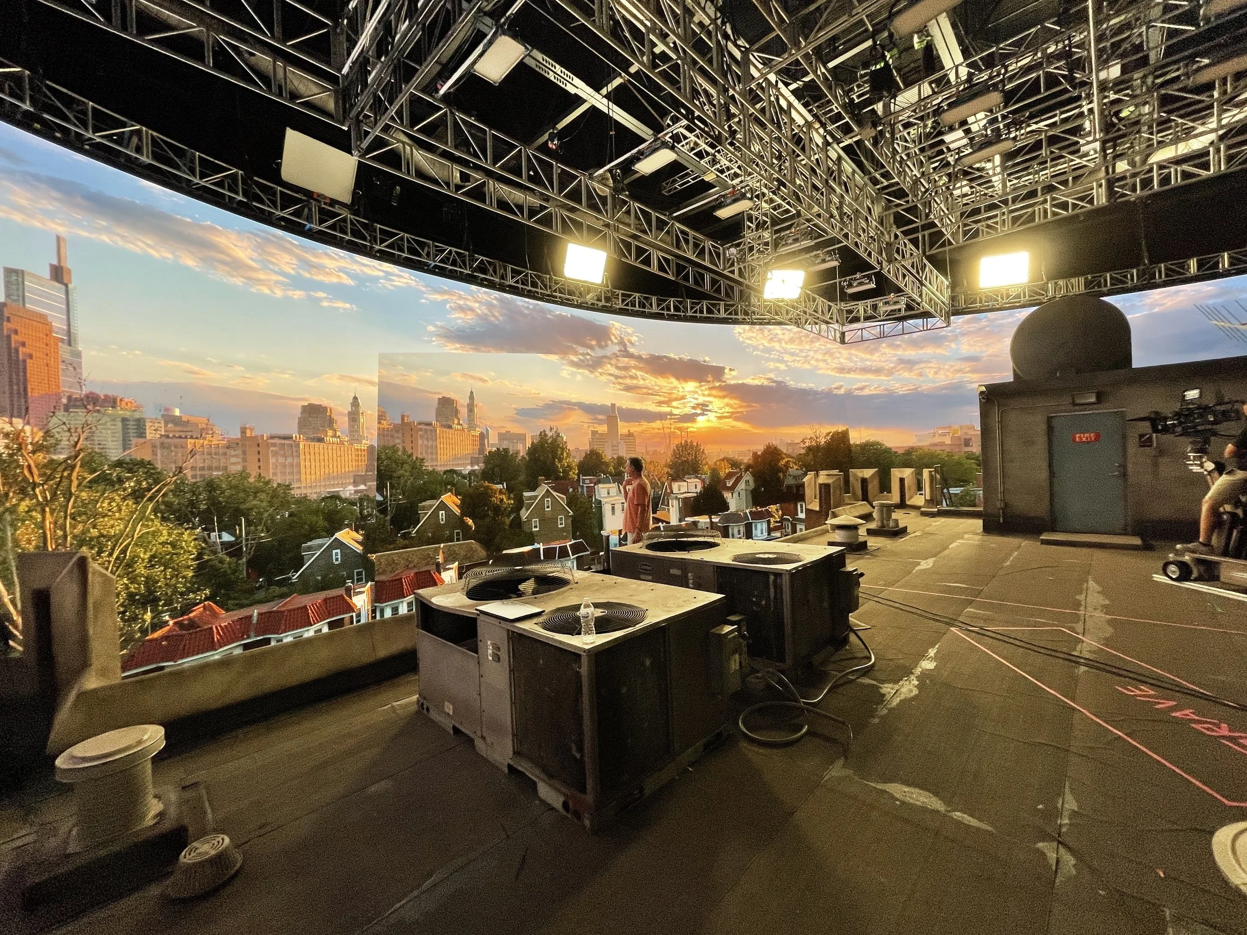 The process began in pre-production when a photographer was sent to a school rooftop in Philadelphia to capture plates, which were then split into different layers for Lux’s 2.5D virtual production approach.